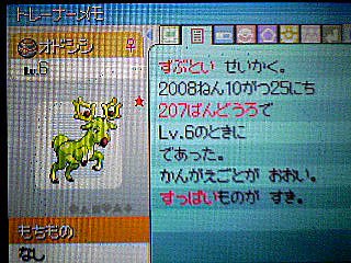 私が捕まえたときは、雨が降っていて、しかも夜だったので、なかなか揺れの見辛いいい環境でした。雨が降っている場所(212番道路のノモセ側とか)では、昼間ポケトレすることをオススメします。