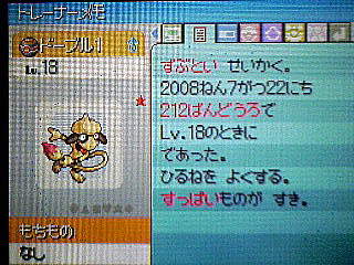 212番のヨスガ側でポケトレを使うと出現するドーブル画伯です。
