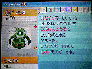 捕まえた日は前後してしまうのですが、去年の1/1には色違いドーミラーを捕まえました(1/2には沢庵色なイシツブテをゲットした模様……)。