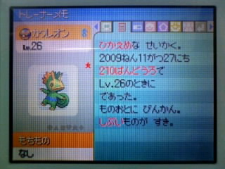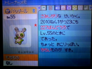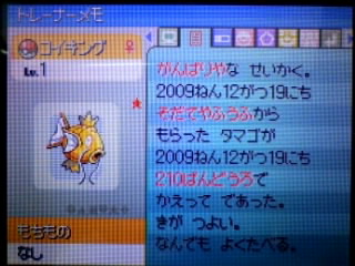 210番道路産なのは、卵を貰ってからセーブをしていなかったため(^^;