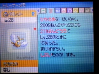 プラチナは、相変わらずレジアオスのリセットで止まっているのですが(あれから1000回ほどリセット回数が増えました、全然出ません /(^o^)\)、オーキドの手紙だけは何とかゲッツしておきました。シェイミかぁ……色々と遠いです。