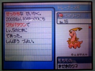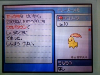SSは★チコリータだったので、HGではヒノアラシかワニノコのどちらかが★になったら終了のつもりでリセットしました(その間、チコリータの色は未確認)。